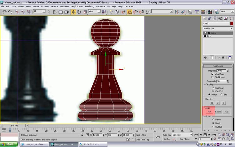 When you first do this, your object will look all weird. Don’t worry. All you have to do is select Align — Min from the Lathe Parameters menu.