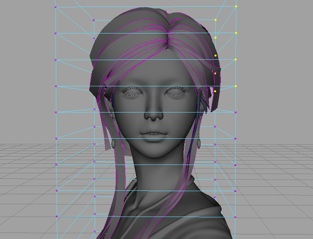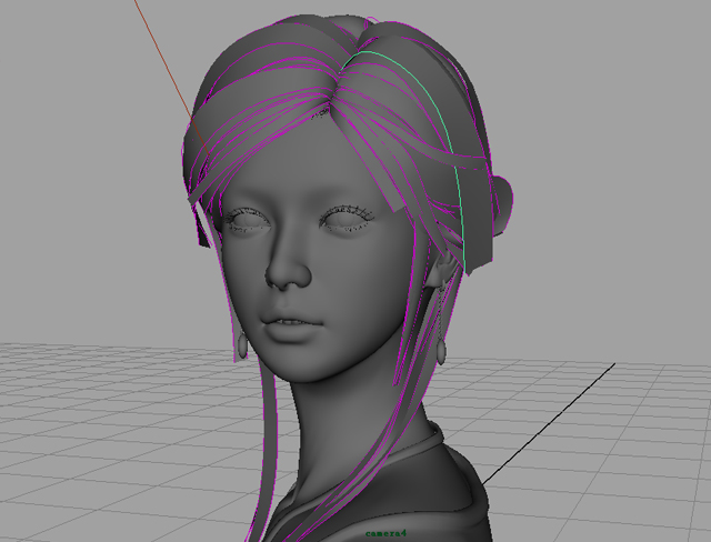 Step 8 This step is making the hair. Once I was asked how to produce the hair, I use NURBS, mainly on two LOFT curve of a surface, do not delete history records. In that case, you can amend it just by controlling the curve directly. If you want to make the effect of the wind, or want to control it as a whole, plus a fine mesh to control the curve. Using this method is very easy to adjust