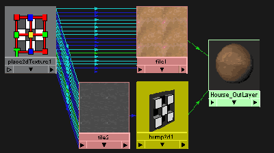 Since the original Lambert shader used above looks very flat when rendered, I have also connected the bump map to make things more real.