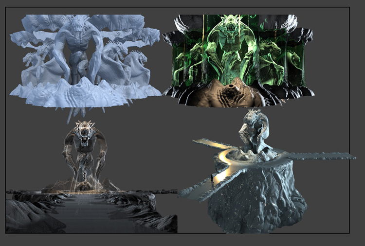 cinematics and large scaled images. We finally ended up with 4 million faces of geometry. The following step was to bring all those details into 3DSMAX.