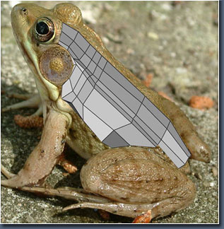 Hi, my name is Massimo Righi and I am freelance CG artist from Italy. What I’m going to do, is to try and show you the main steps of how I’ve made my "Male Green Frog" image. I’ve used Maya 8 for modelling, MentalRay for rendering and Photoshop for the textures. The goal for me was to not only create a photo‐realistic render, but also a 3d model for animation purposes, without the use of ZBrush (or similar software) and without adding any kind of post‐work to the final render.