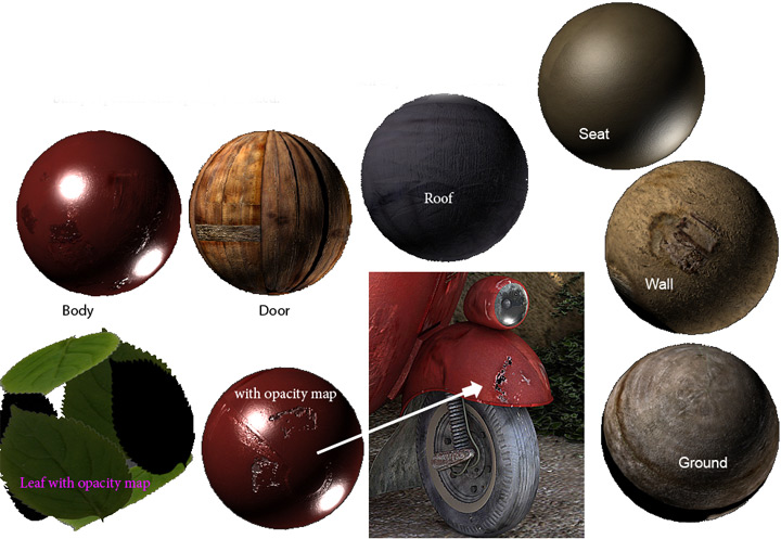TexturingFor texturing I used textures from 3D Total …( Total Textures), and some other textures from web. Textures was repaired in Photoshop with high res then duplicate texture to make bump , specular and opacity if needed.