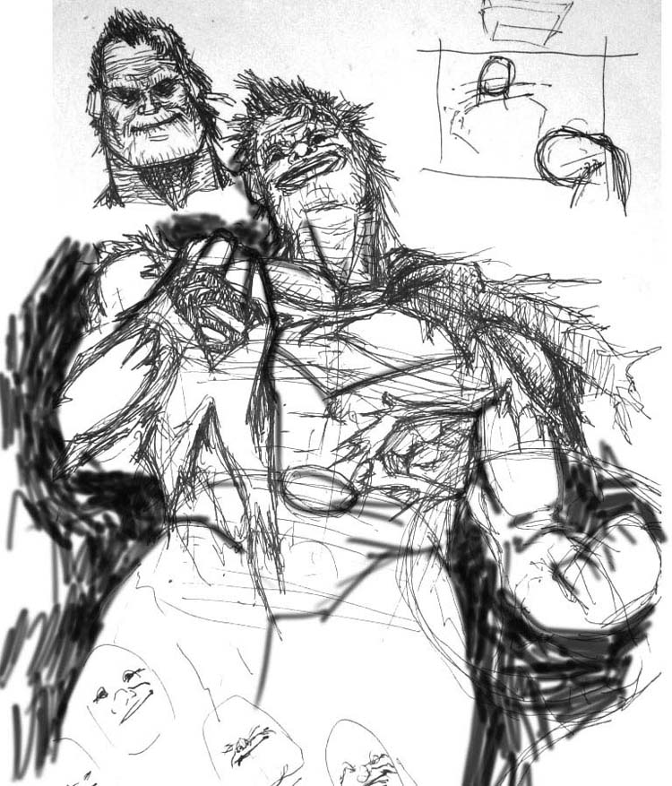 Being motivated by my anti-hero side, I come up with the idea of making Bizzaro, the un-perfect clone of Superman. The reference I had was mostly from Alex Ross’ sketches in the comic “Justice”. After gaining enough reference, I tried to develop the character furthermore in my own perception. I wanted the character to be meaner, and a little bit psychotic. I also wanted to make him as if he had won from a great battle against Superman. I deliver the message by making him posed filled with pride and holding Superman’s ripped costume sort of as his trophy. Here’s the sketch.