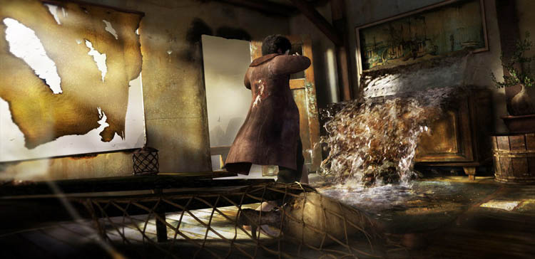 Lucas came out of the chamber of oceans and run with his face filled with tears to his father and asked him not to leave him. Lucas Father had one wish, that Lucas would wear the old leather coat that his father owned for almost 30 years. Lucas needed this coat, or else he would die sooner than help could arrive. His father died soon after that. Lucas was in the Chamber Of Oceans for a long time. 3 Years to be precise. He only got out of this room to look for food, fish and find usable stuff for inside the room. Lucas began hallucinating a lot of the nights, and one day, when he was so wishing to get home, he looked at the painting above of the wooden cabinet. The painting of his old harbor, the harbor near his home. He was so willing, so dreaming to get home, that the painting ripped open, and water flood the room and Lucas. Lucas knew, that this was perhaps the only way to come back home…..