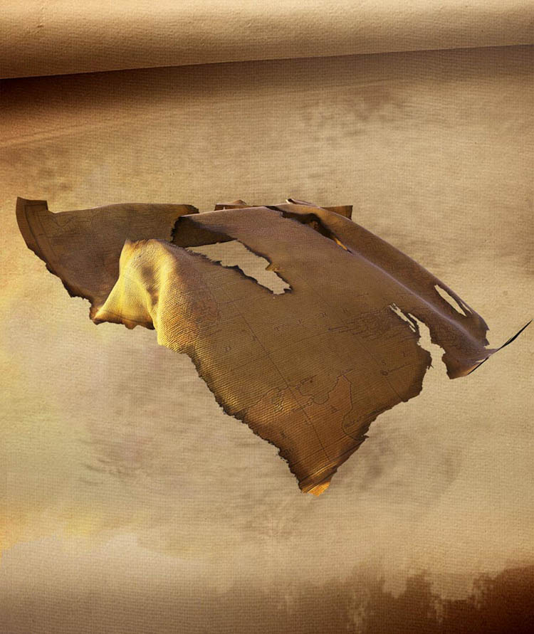 The map itself is not very visible on the smaller resolution renders from the chamber of oceans, but its definitely there. The reason why i used this map as a curtain is that Lucas was somehow protected for dangerous storms and he could try to find out a way to come home by using the coordinations on this map. I used the cloth simulation from 3dsmax and this was just an easy thing today when i combined it with a wind modifier. I liked the fact that the cloth is somewhat burned up, so that light rays can still find there way to the inside of the chamber of oceans.