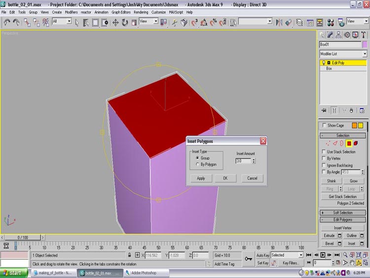 Next, apply an edit poly modifier and select the Polygon sub-object.