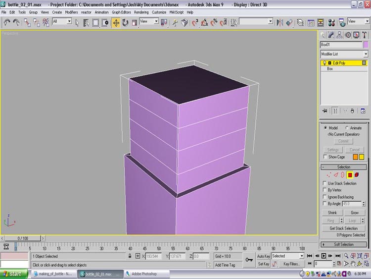 Next, apply a Edit Poly modifier to it, and then select the top and bottom row of edges and chamfer them to the amount of .5.