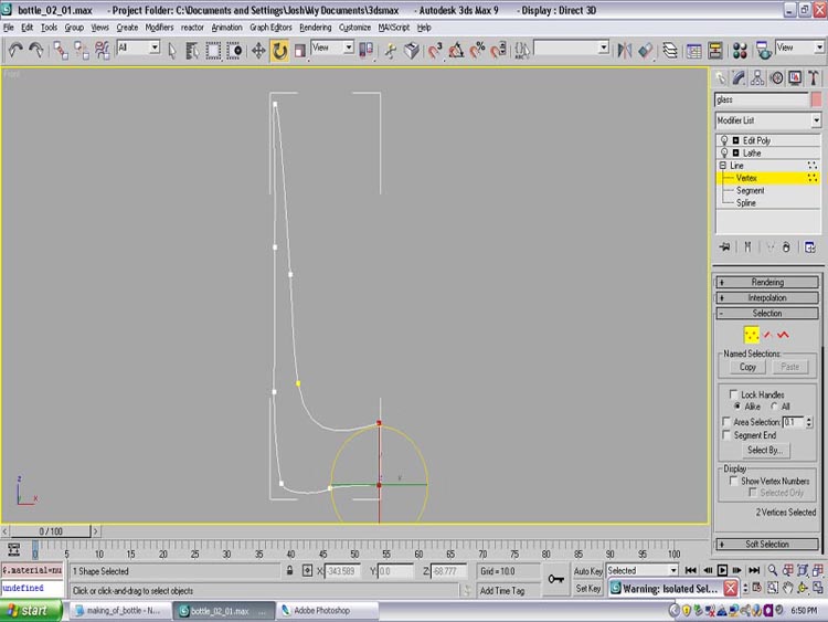 Once you have drawn the shape of the glass you want, go to the Modifier stack and select Lathe. Under the Lathe setting select Weld Core, and set the alignment to MAX.