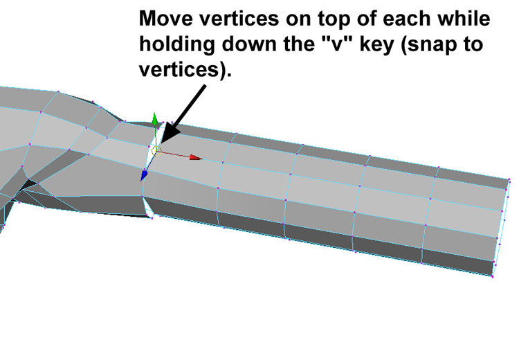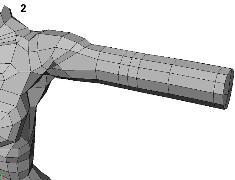 Merge these overlapping vertices. Step 2 shows the arm at this stage and the areas where it has been divided.