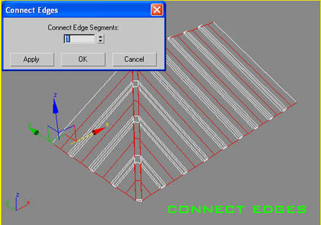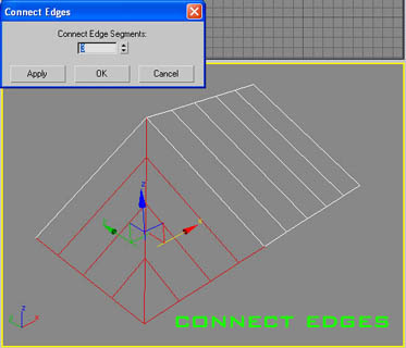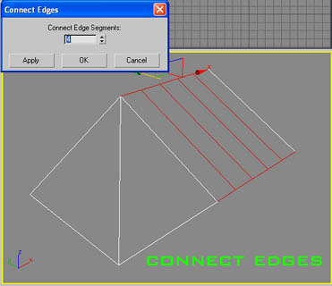 4. Using “Connect” create 4 segments between the 2 selected edges. (You can find the connect tool when we use edge sub-object).