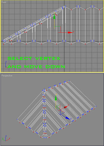 10. Select the vertices in between the edges then move down to make the roof wavy.