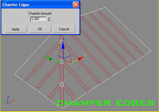 7. Go to polygon sub-object mode and select the polygons created by the chamfer as shown below.