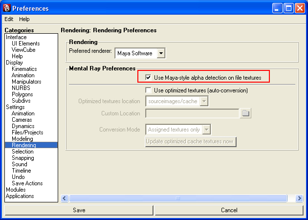 Note: Tiff files that are created in Mudbox 2009, have a LZW compression. This compression is not supported by mental ray .