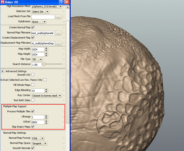 Mudbox When extracting the displacement (or normal maps) out of Mudbox, make sure the “Process Multiple Tiles” option is turned ON. “URange” option means: where the distance of the first UV shell is located. Remember the tiles are in a UV 0-1. Note : The parameter is named “URange,” hence the reason we have laid out the UVs on the U direction.