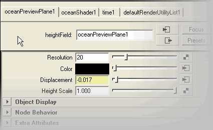 5-still with the preview plane selected hit (Ctrl+A) from your keyboard to open up attributes editor, once the attributes editor appear click on the tab called (Ocean Preview Plane1), you will see few option here, like (Resolution), (Color), so on and so forth,