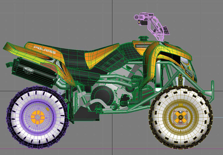 I did model the wheel details, because a quad wheel cannot certainly be represented by a bump map