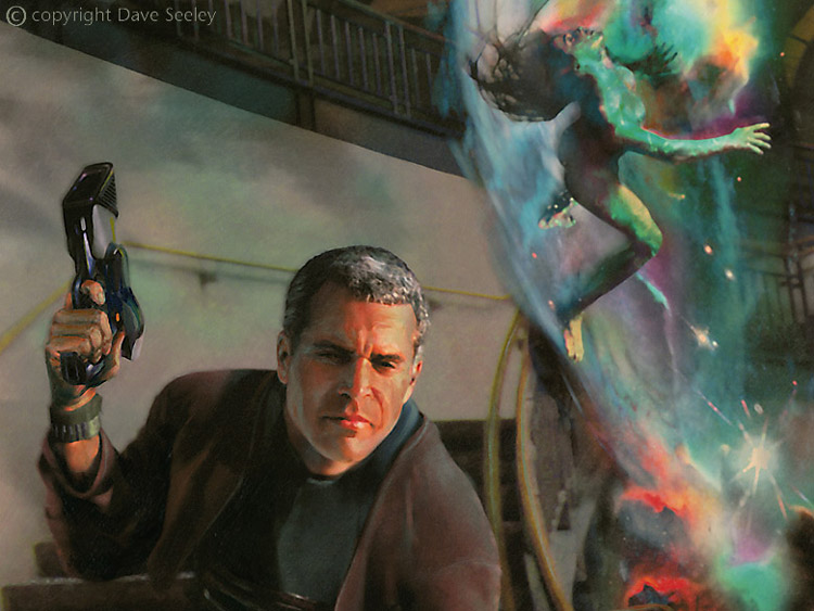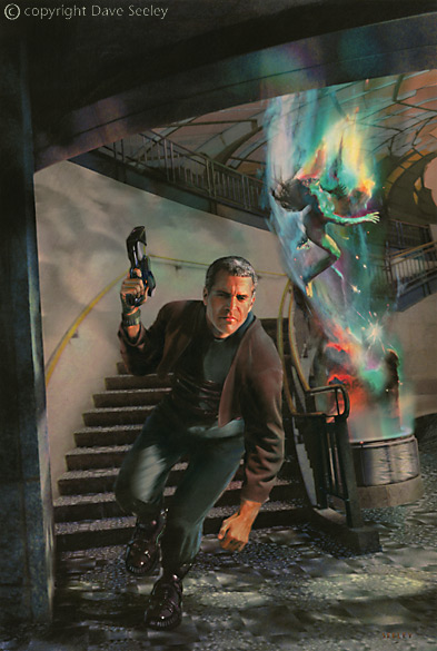 About my images….I’m far more influenced by modern day sci-fi film noir than by illustration in the industry today. I certainly tend toward the painterly in non-digital illustration. I admire work of Berry and Hale, Kent Williams, John Muth, Dave McKean, and George Pratt. I love the art of Caravaggio, Egon Schiele, John Singer Sargent, Robert Graham and Odd Nerdrum.To create photo/digital images, I often tackle a piece from the ground up with photo-collage in the computer. Recently, when time allows, I’ve been painting on archival digital prints of photo-collaged images for the final piece. This tutorial is a demo of this process.