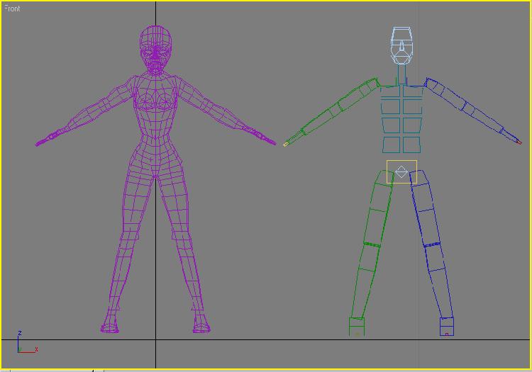 4-ok now toggle to front view port and then move the biped to fix it similar on the image below.