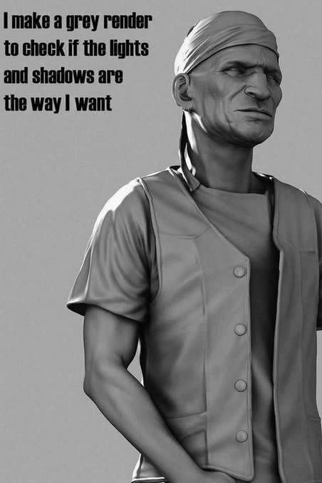 When I have all my lights I do a grey render to check if it’s what I had in mind.