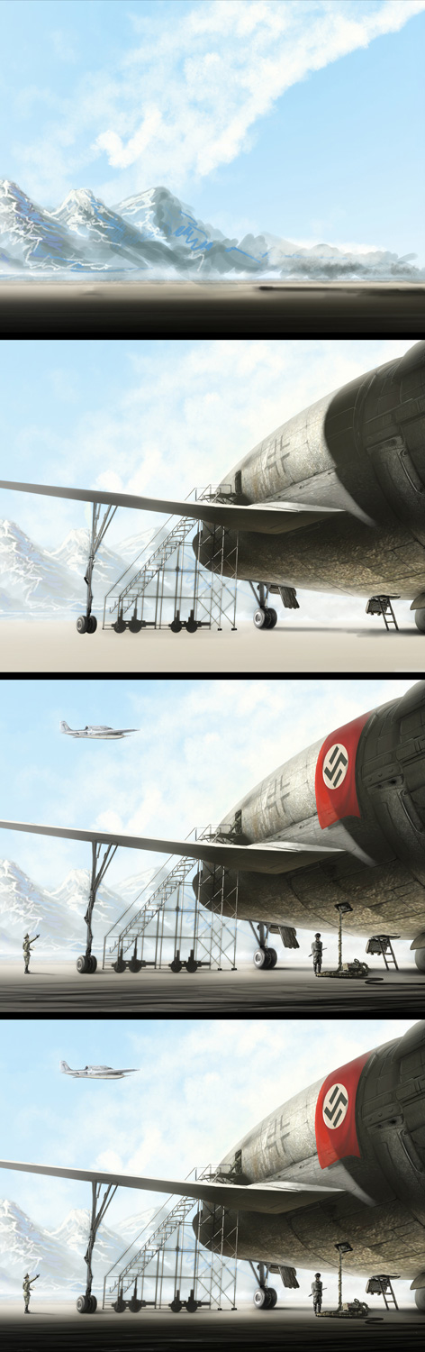 There are soldiers and engineers because they are preparing air vessel for a flight. I made these minor people figures with speed painting.