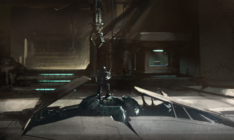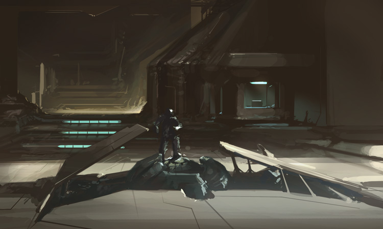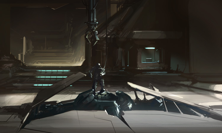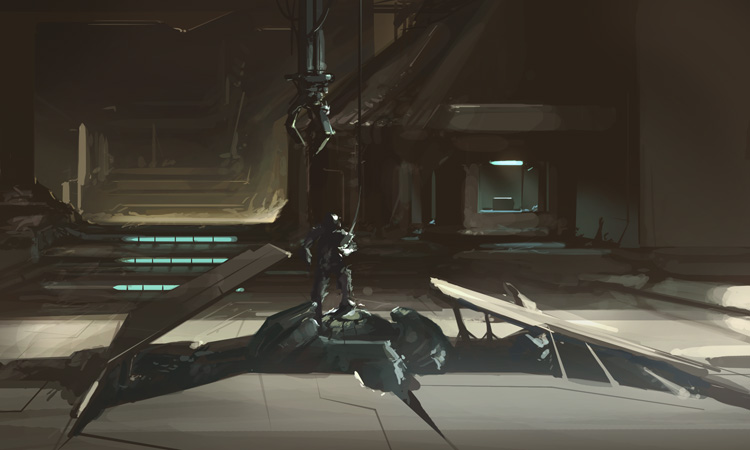 15. The image still seems abit empty to me, and adding new objects always creats new readable items for the viewer to explore. In this case i added a crane which for the pilot to operate. The colors picked are similar from the spaceship.