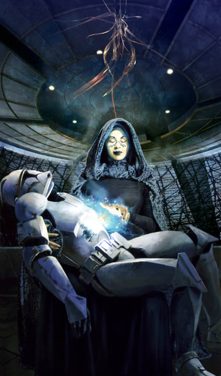 While I needed to go back to the drawing board for Battle Surgeons, I did end up using most of the work leading up to this point on the second book in the follow-up volume in the Medstar Duology “Healer”. This image was the result of making a mental connection between the initial concept of this first image and Michaelangelo ’s Pieta sculpture at the Vatican in Rome. I liked the metaphorical implications between the two figures and the power of the iconic tableau.