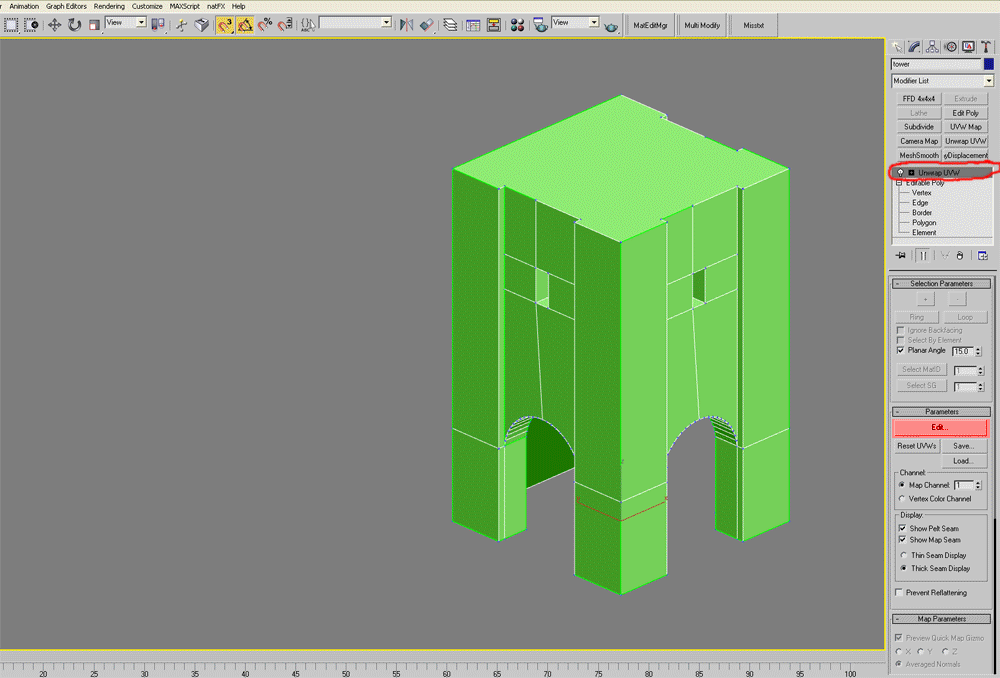Now lets proceed with the texturing, this is the reason why I made my modeling as simple as possible so I won’t be having any problem uvw unwrapping the geometry. I have isolated the object that I’m going to texture, while the object is selected I applied unwrap uvw. From the sub element menu of the unwrap uvw change the selection to face and check the planar angle so it will be easier to select the faces within the same angle.