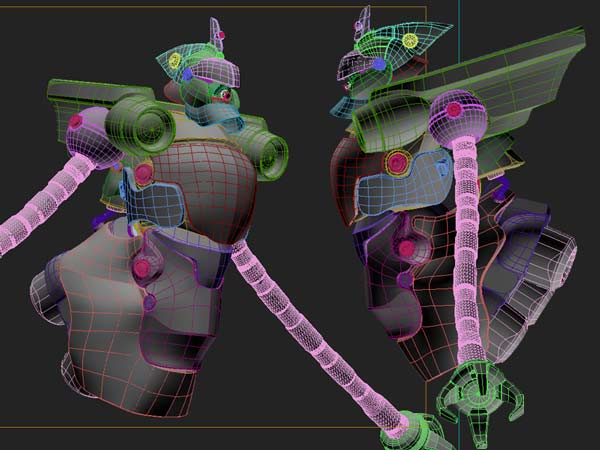 The 3 images above showing the 2 main characters in shaded & wireframe mode Â