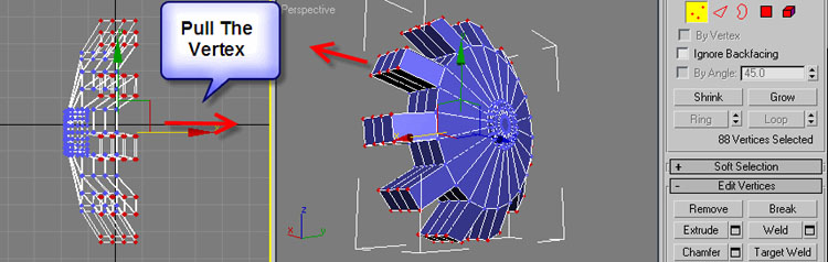12-again go to vertex mode then selected the indicated vertices move them as in the picture indicating below.