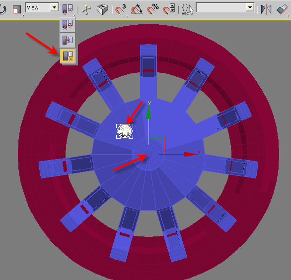 29-now go to front view port and place it something like on the image below. and make sure the pivot point is in the center of rim. you can see in the left top of image (use transform coordinate center).
