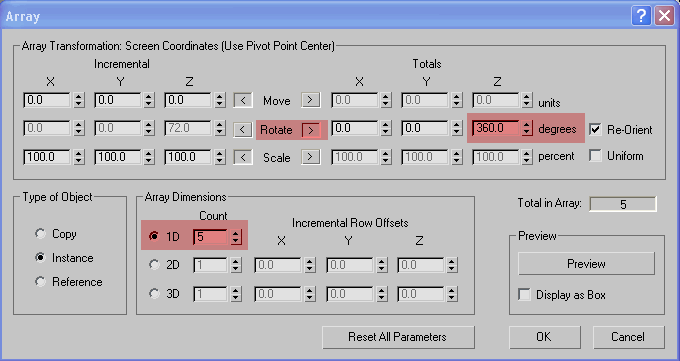 31-from the settings do the same as image below, one thing keep in mind the array settings will differ if you in different view port, in this case i am rotating around Z Axis as below.