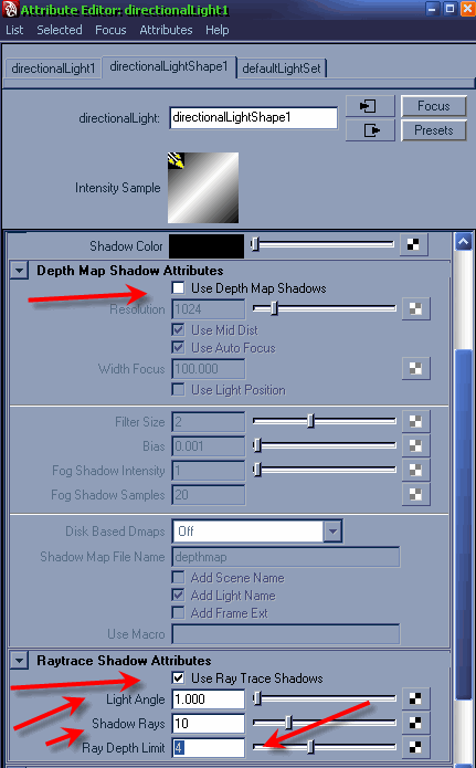 7-ok now uncheck the Use Depth Map Shadows and scroll down to bottom and check (Use Ray Trace Shadows),