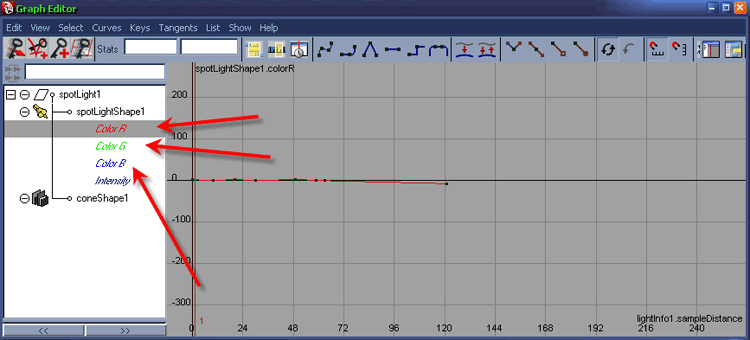 17-once your Graph Editor Opens you will see Color R, Color G and the Color B, play with each Color points and then see what happens,