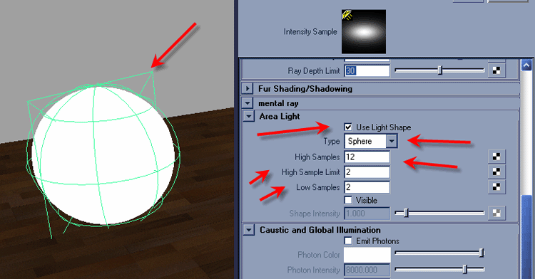 12-ok select your light and in the Light Shape choose anything you like according to your object in the scene in this case i am going to choose Sphere since i am dealing with Sphere, scale the light to fit your object and do the settings as you can see in the image indicating below,