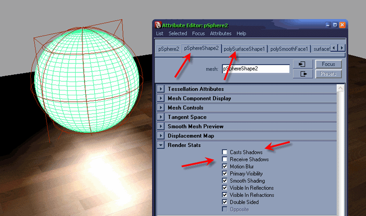 14-ok lets work on the problem, select the object and open up Attributes editor in the (pSphereShape2) and in (polySurfaceShape1) uncheck (Cast Shadows) and (Receive Shadows) this is in my case if you using different objects this could different,