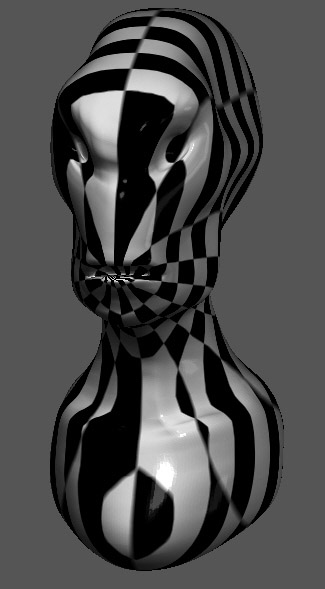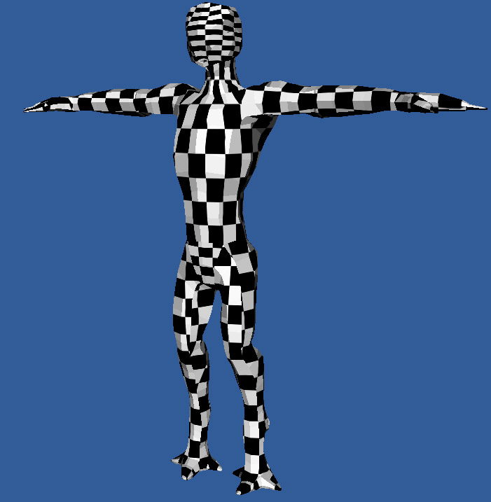 The cylindrical mapping with the checker texture on the example model.