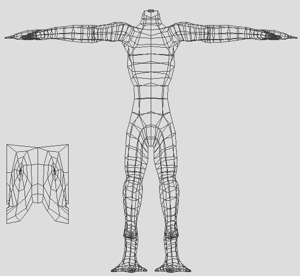 This will allow us to see and select the geometry. What we need to do is examine the figure, then break it down and determine which mapping method will work for which area of the body.