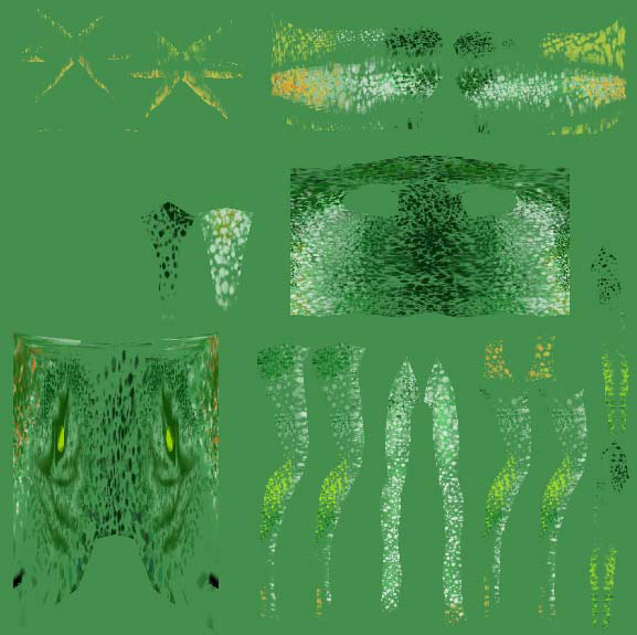 Arrange the maps in a manner so that they make the best use of the space. You can make certain maps larger and therefore more detailed portion of the texture by sizing them bigger than the rest. The head is a good candidate for this. ZBrush does a seamless job of painting across maps of different proportions, but if you plan to paint in another program, be aware that a single brushstroke can vary when painted across maps that are not in proportion with each-other.