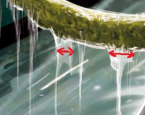 We have to remember the same property when we paint a dripping surface.The volume of water is larger at the beginning, than becomes smaller asthe water detaches from the object and looses the grip.