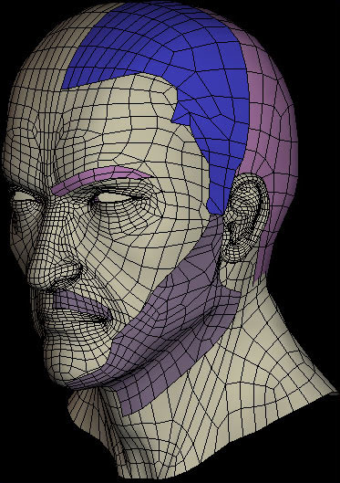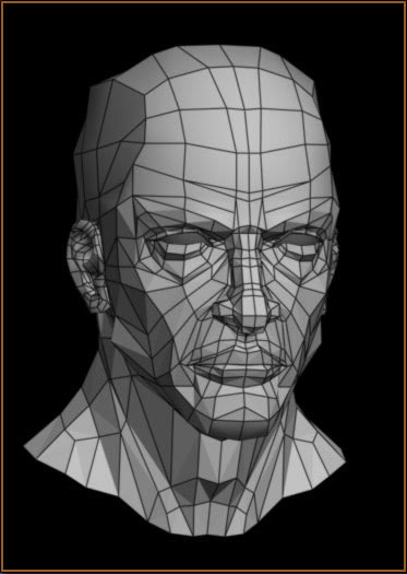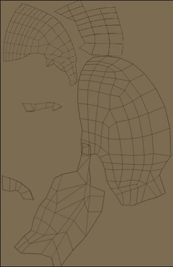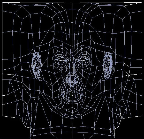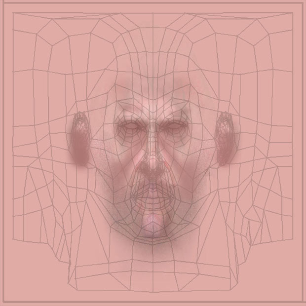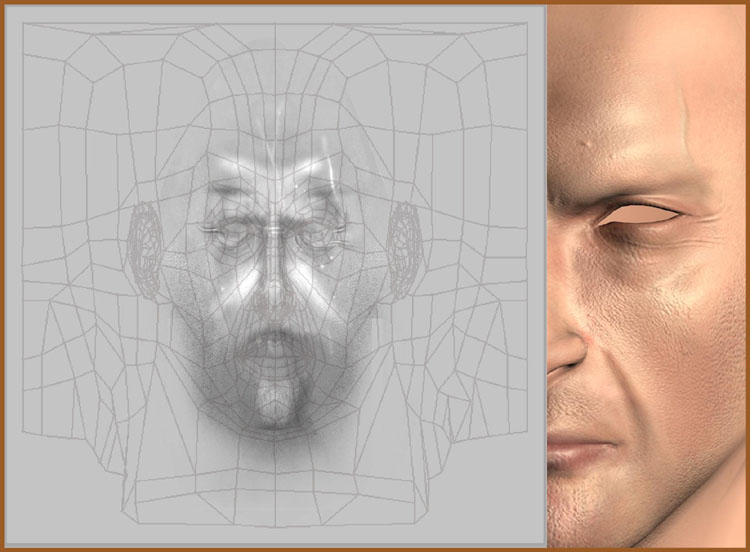 Using a basic skin texture I worked over it in Photoshop for further enhancements and at the same time matched the texture to go with the wireframe. I kept checking the changes on the face model in max. When the texture was mapped almost perfectly on the face I started of with the bump map for the face.