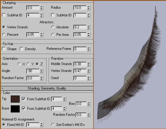 Using the same ID in the shag hair roll out under the length multiplier submat ID prevents even alignment of the hair, as the hair that would render on brighter areas would be longer than the hairs that would render on darker areas.