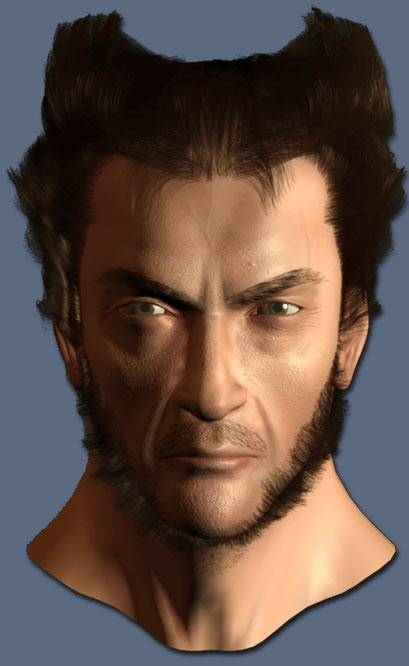 This is my favorite way to model any character. I started the model using a box in max over my hand drawn rough sketch of the wolverine character.